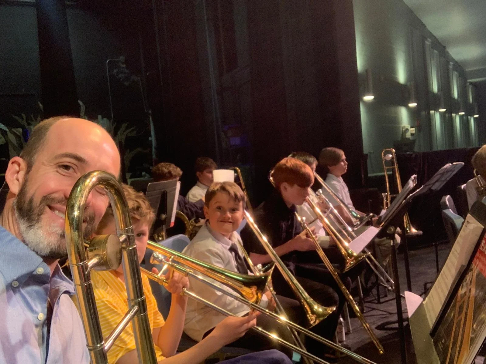 Leading a middle school trombone sectional with South Coast Youth Band in Santa Barbara, CA.